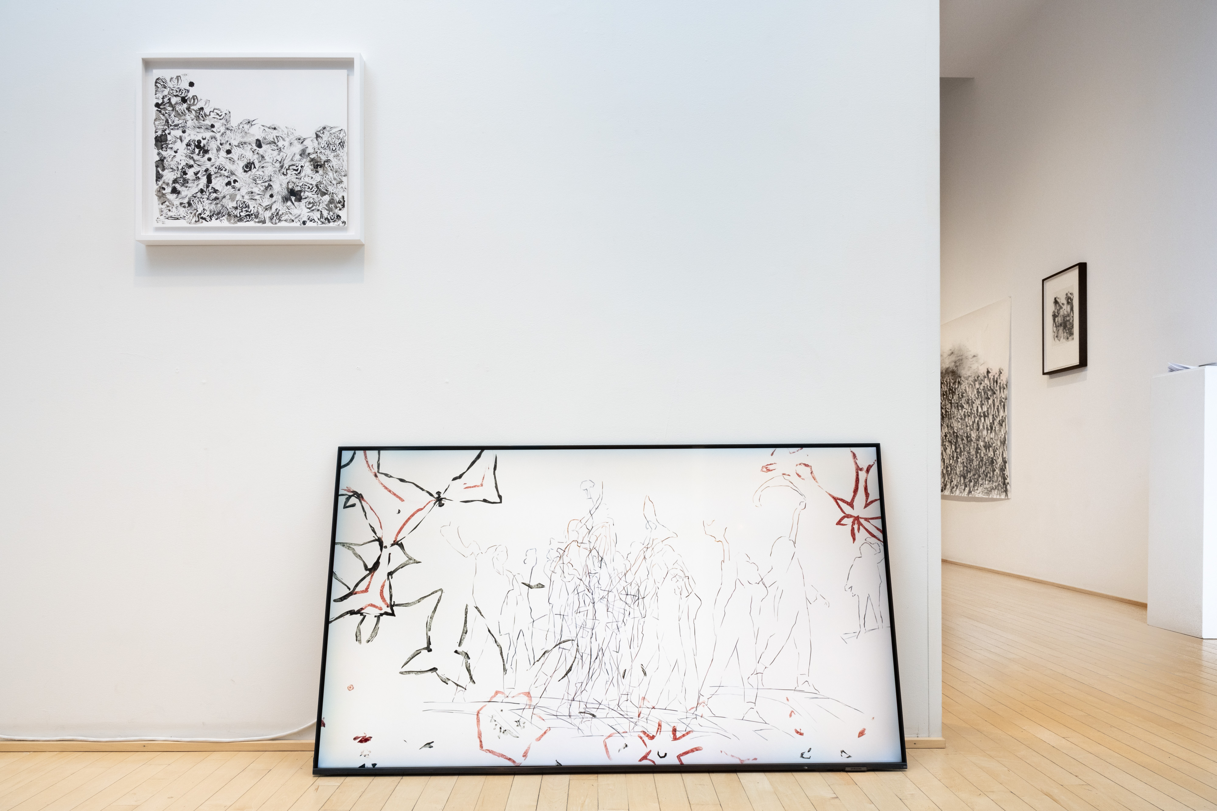 Chaque trait, chaque estampe et chaque trace de doigts sur ce dessin est une fin, un essai pour suivre le rythme du chant faisant méditer l'artiste sur les luttes des femmes pour la liberté, le courage que demande la désobéissance, la force collective d’un peuple en révolte et la grandeur du sacrifice.